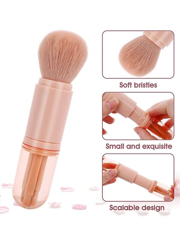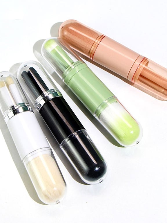- All-in-One Convenience: Four essential makeup brushes are neatly contained within a compact, protective capsule, eliminating the need for bulky brush cases.