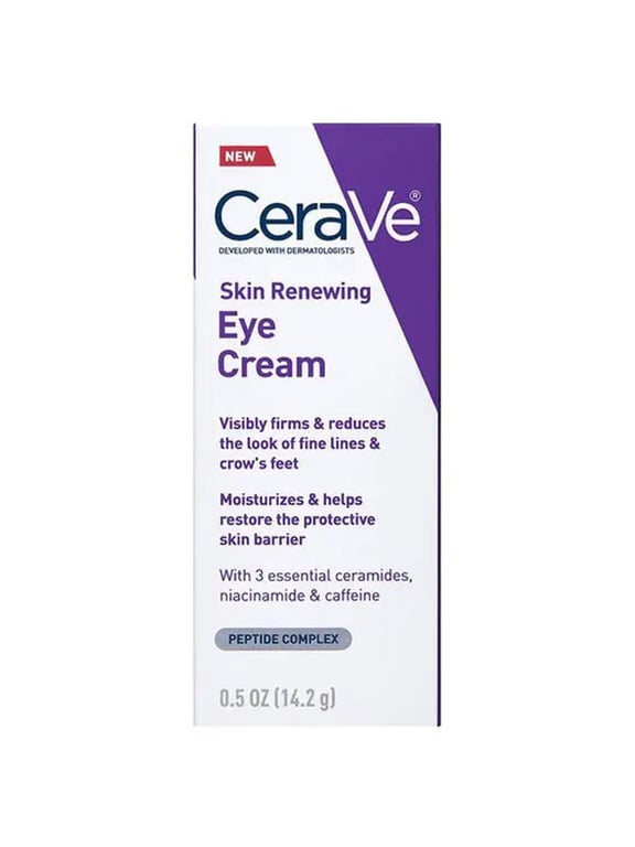 Cerave Skin Renewing Eye Cream (0.5 oz/14.2 g) visibly firms and reduces fine lines. This dermatologist-developed cream moisturizes, restores skin's barrier, and includes ceramides, niacinamide & caffeine. Shop now and revitalize your eye area!