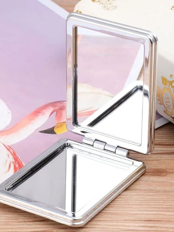 Pocket-sized perfection! This mini compact mirror features a crisp reflection & elegant silver trim. Perfect for travel, purses & quick touch-ups. Compact design. Grab yours now!