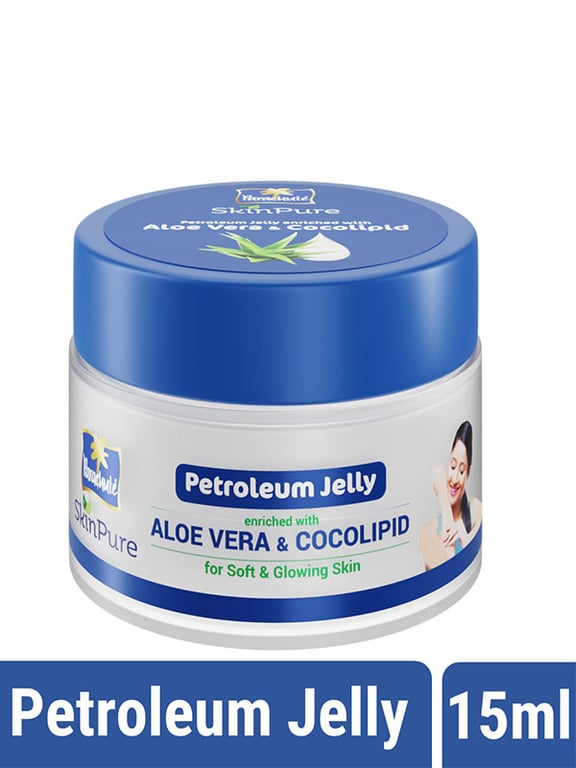 Parachute SkinPure Petroleum Jelly 15ml nourishes & protects! This lightweight, non-greasy jelly is enriched with Aloe Vera & Cocolipod for soft, glowing skin. Perfect for dry skin & chapped lips.