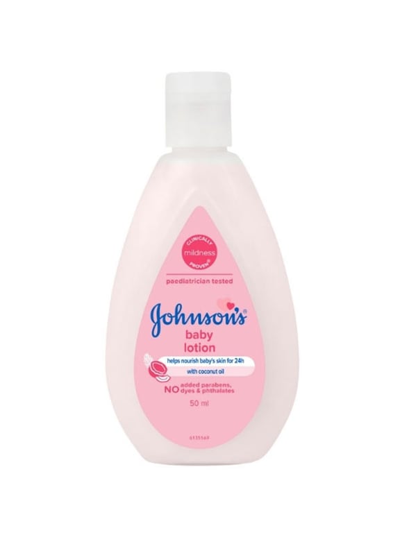Keep baby's skin soft & nourished for 24 hours with Johnson's 50ml Baby Lotion! This pediatrician-tested, pink lotion with coconut oil is gentle & moisturizing. Grab yours now! #babylotion #johnsonsbaby #babyskincare