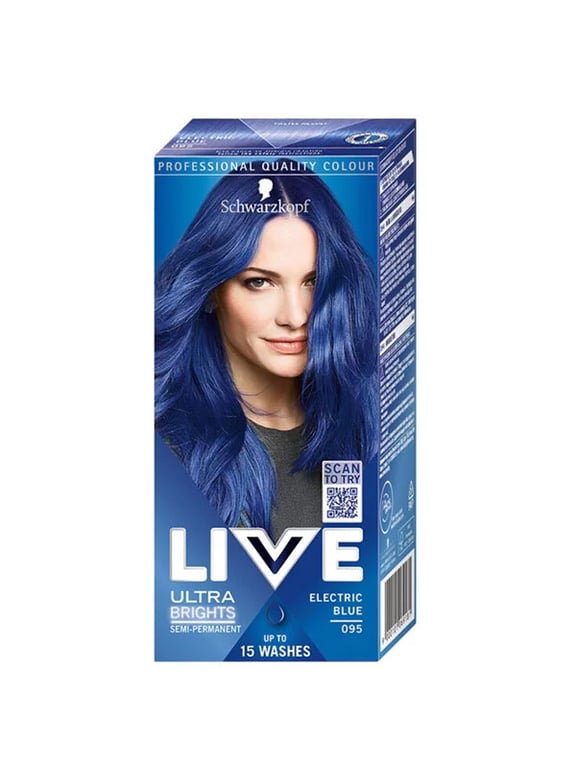 Transform your look with Schwarzkopf Live Ultra Brights Electric Blue! This vibrant, semi-permanent hair color delivers professional quality results lasting up to 15 washes. Get this electric blue shade in a convenient box.